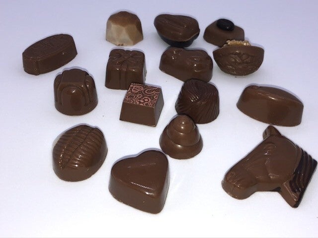 Een mix van witte, zwarte en melk chocolade in een luxe box.